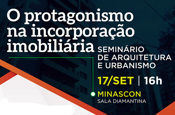 SEMINÁRIO DE ARQUITETURA E URBANISMO O protagonismo na incorporação imobiliária 17 de Setembro, 16h às 19h Local: Sebrae Minas – Minascon 2019 …